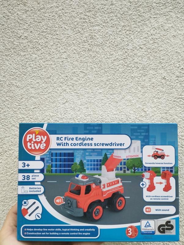 Игрушечный конструктор Playtive RC Fire Engine - это увлекательный набор из 38 деталей, который позволяет ребенку самостоятельно собрать настоящую пожарную машину с дистанционным управлением. После сборки модель можно управлять вперед и назад, а звуковые эффекты делают игру еще более реалистичной. 2️| Преимущества и возможности - Дистанционное управление после складывания - Беспроводная отвертка выполняет роль пульта - Звуковые эффекты пожарной машины - Развивает мелкую моторику, логику и креативность - Батарейки уже в комплекте - Простое и увлекательное складывание для детей от 3 лет 3️| Комплектация - Пожарная машина — 33 детали - Аккумуляторная отвертка / двигатель - Ручка для пульта дистанционного управления / беспроводной отвертки - Ручка для гайкового ключа - 2 насадки для викрутки/гайкового ключа - Инструкция 4️⃣ Характеристики - Тип: конструктор с дистанционным управлением - Количество предметов: 38 - Эффекты: движение вперед/назад, звуки - Возраст: 3+ - Бренд: Playtive - Тематика: пожарная машина 5️| Почему стоит выбрать именно этот набор Это не просто конструктор – это полноценная интерактивная игрушка, которая сначала захватывает процесс сборки, а затем – игрой с дистанционным управлением. Идеальный подарок для детей, которые любят технику, активные игры и творчество.