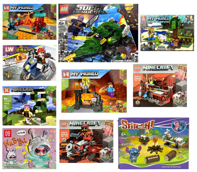 Набор из 10 рандомных конструкторов (minecraft, heroes, my world, stitch, фигурки, техника...
