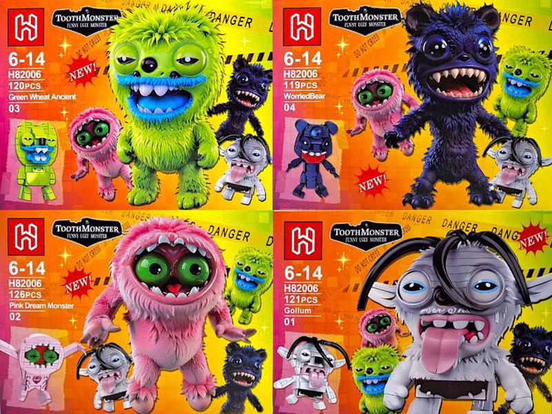 Конструктор 4 в 1 Fuggler Funny Ugly Monster (Tooth Monster) Описание: Набор конструкторов серии Funny Ugly Monster позволяет собрать сразу четырёх забавных и смешных монстров. Яркие цвета, необычный дизайн и юмористические эмоции делают этих персонажей настоящим украшением коллекции. Каждый монстр имеет уникальный вид и характер – от пушистого розового мечтателя до зелёного лохматого монстра с большими зубами. Идеально подходит для детей от 6 лет, развивает фантазию, мелкую моторику и логическое мышление. Герои набора: Green Wheat Ancient (Зелёный лохматый монстр) – 120 деталей Pink Dream Monster (Розовый мечтательный монстр) – 126 деталей Worried Bear (Встревоженный медведь) – 119 деталей Gollum (Серый монстр с длинным языком) – 121 деталь Характеристики: Серия: Tooth Monster – Funny Ugly Monster Формат: 4 в 1 (отдельные коробки с разными героями) Возраст: 6–14 лет Количество деталей: 486 шт. всего (120 + 126 + 119 + 121) Материал: ABS пластик, безопасный для детей Размер коробки: 19 × 14,5 × 5 см (каждая) Сложность: средняя Совместимость: подходит к другим известным конструкторам