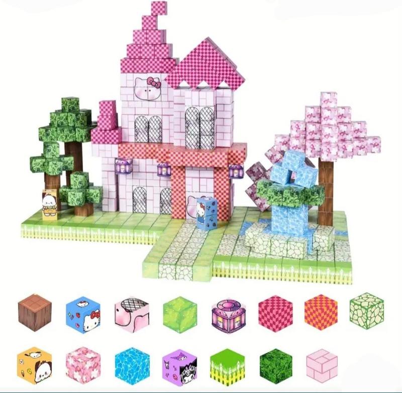 Магнітний конструктор 100 деталей – hello kitty, kuromi, minecraft | освітні магнітні куби...
