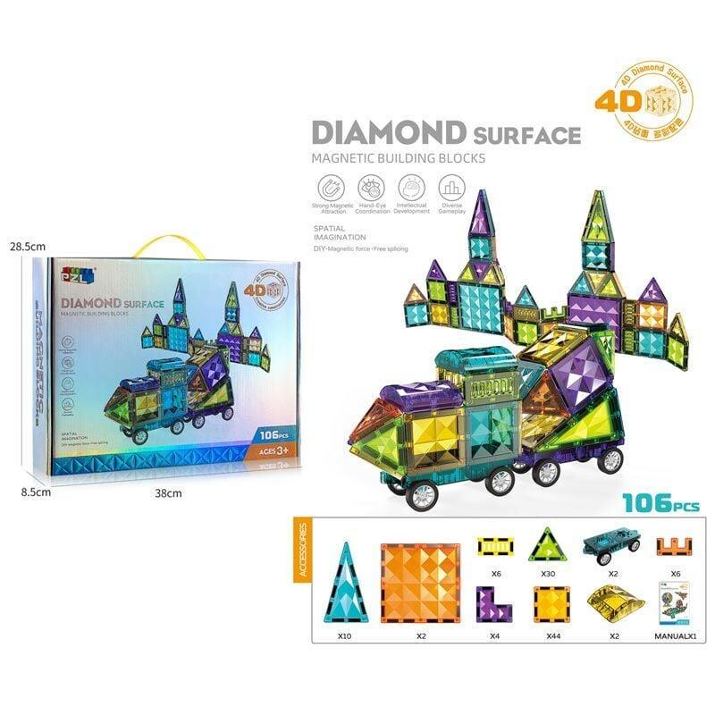 Развиваем фантазийное мышление ребенка вместе с магнитным конструктором! Набор включает 106 деталей, которые легко фиксируются друг к другу, образуя надежную конструкцию. Они отличаются между собой по цвету, форме и размеру. В комплект также входит инструкция примерами фигур. Особенности: - магнитный конструктор с объемными элементами; - включает 106 деталей; - имеет цветную расцветку; - позволяет создать различные фигуры в формате 3D; - инструкция с заданиями различной сложности; - конструктор выполнен из прочного первичного пластика.
