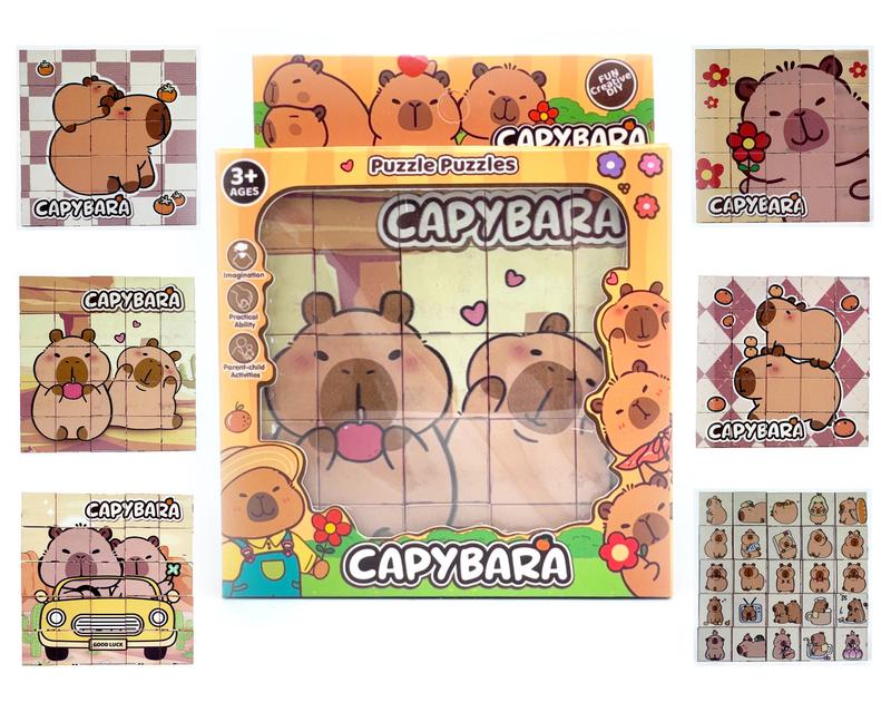 Описание (російською) Пазл 6в1 Магнитный Конструктор Капибара – CAPYBARA • 25 Блоков • 10×10 см Магнитный Пазл CAPYBARA 6в1 — это яркий и увлекательный набор из 25 магнитных кубиков, из которых ребёнок может собрать 6 разных картинок с капибарами. Блоки имеют встроенные магниты — пазл легко собирается, не распадается и отлично подходит даже для маленьких детей. Особенности: 6 разных изображений капибары в одном наборе 25 магнитных кубиков (комбинация 5×5) Размер одного кубика: 2 × 2 × 2 см Готовый пазл: 10 × 10 см Можно собирать на столе, холодильнике или любой металлической поверхности Развивает логику, внимание, воображение и мелкую моторику Яркие мультяшные иллюстрации CAPYBARA Отлично подходит для совместной игры с родителями Комплектация: 25 магнитных кубиков 6 карточек-подсказок Цветная коробка с окошком Возраст: 3+ года