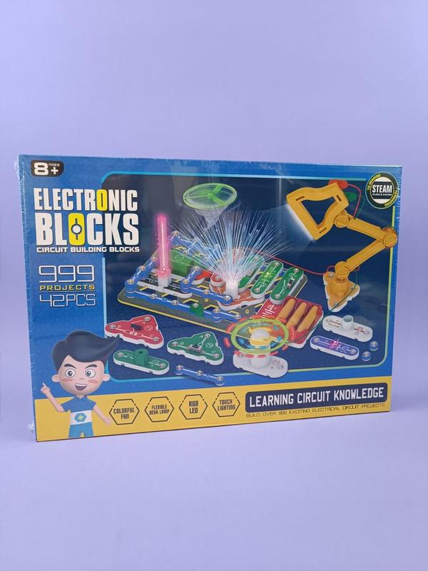 Електронний конструктор з 42 елементів -- це захоплива іграшка для дітей, яка дозволяє створювати понад 999 різних проєктів У наборі передбачено вентилятор, світлодіодні індикатори, лампу та інші цікаві модулі. Деталі легко з'єднуються між собою, завдяки чому дитина зможе швидко зрозуміти принцип роботи електричних схем. Конструктор допомагає розвивати логічне мислення, уяву та інтерес до науки й техніки. Яскраві ефекти під час роботи роблять гру ще більш видовищною та пізнавальною. Це чудовий подарунок для маленьких інженерів! Особливості: - 42 елементи; - конструктор працює від батарейок; - деталі з підсвічуванням; - деталі кріпляться між собою завдяки кнопкам; - основа для збирання конструктору. * Характеристики та комплектація товару можуть змінюватися виробником без повідомлення