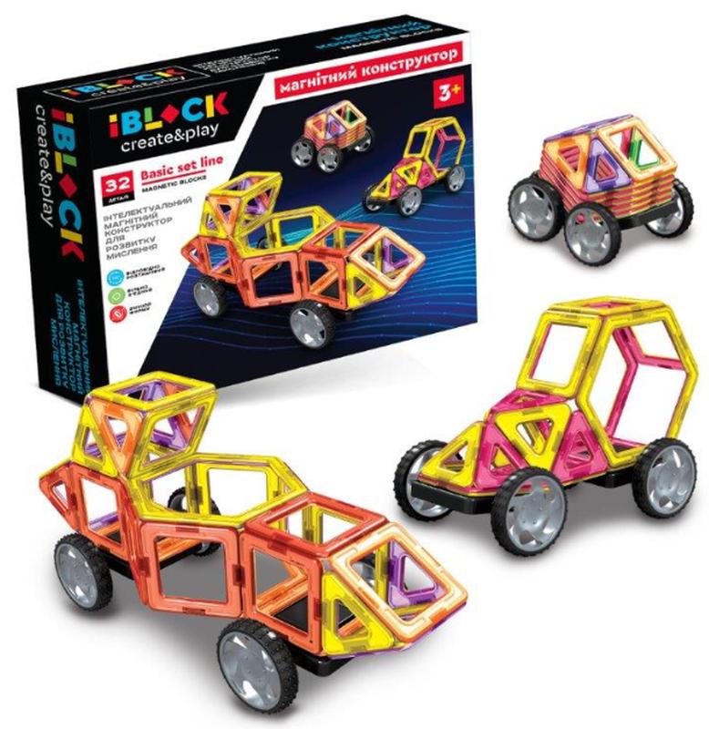 Конструктор магнітний iblock pl-923-528 32 деталі з кколесами