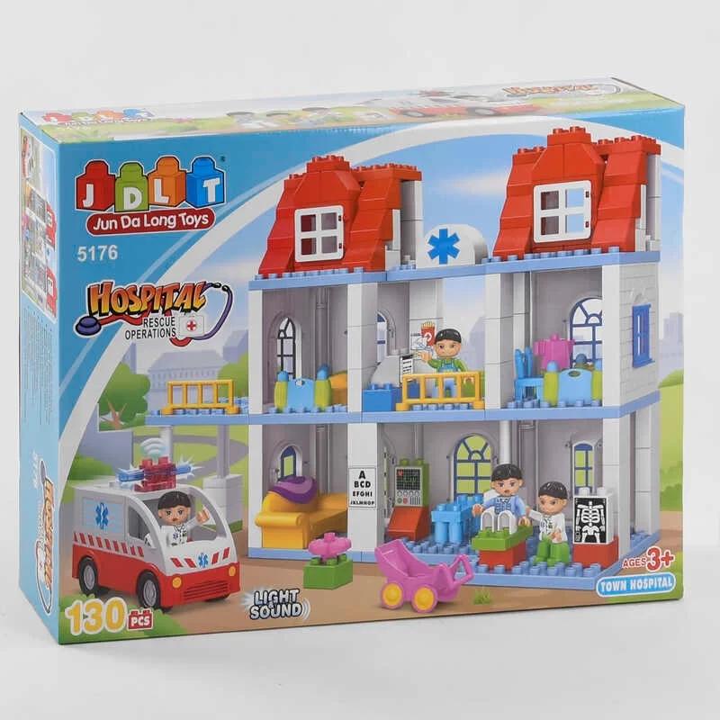 Игрушка конструктор jdlt 5176 (6/2) "больница", 130 деталей, 4 фигурки, свет, звук, в коро...