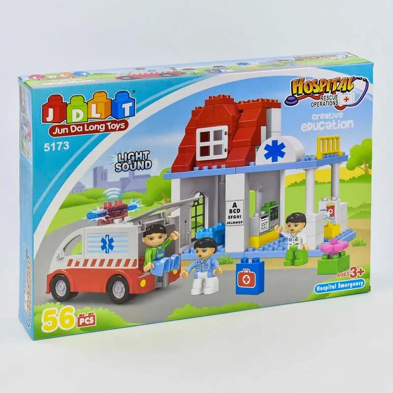 Игрушка конструктор jdlt 5173 (12/2) "пункт скорой помощи", 56 деталей, 3 фигурки, свет, з...