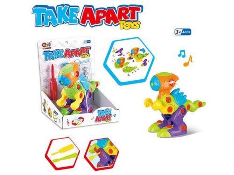 Уценка. ( нет звука, света с одной стороны) Яркий пластиковый динозавр конструктор, в комплекте с которым идут отвёртка и отвёртка-ключ, с помощью которых можно откручивать части динозаврика. Имеет световые и звуковые эффекты: динозаврик рычит и у него светятся глаза. Работает на батарейках (идут в комплекте). _ Бренд: Qi Huang Упаковка: Шоубокс Цвет: Разноцвет Тип эл-тов питания: Батарейки Эл-ты питания в комплекте: Есть Вес в упаковке: 215 г Габариты в упаковке: 20 x 16 x 15 см Габариты без упаковки: 16.5 x 16.5 x 8 см Cтрана производитель: Китай Материал: Пластик Комплектация: Динозавр, 2 отвёртки