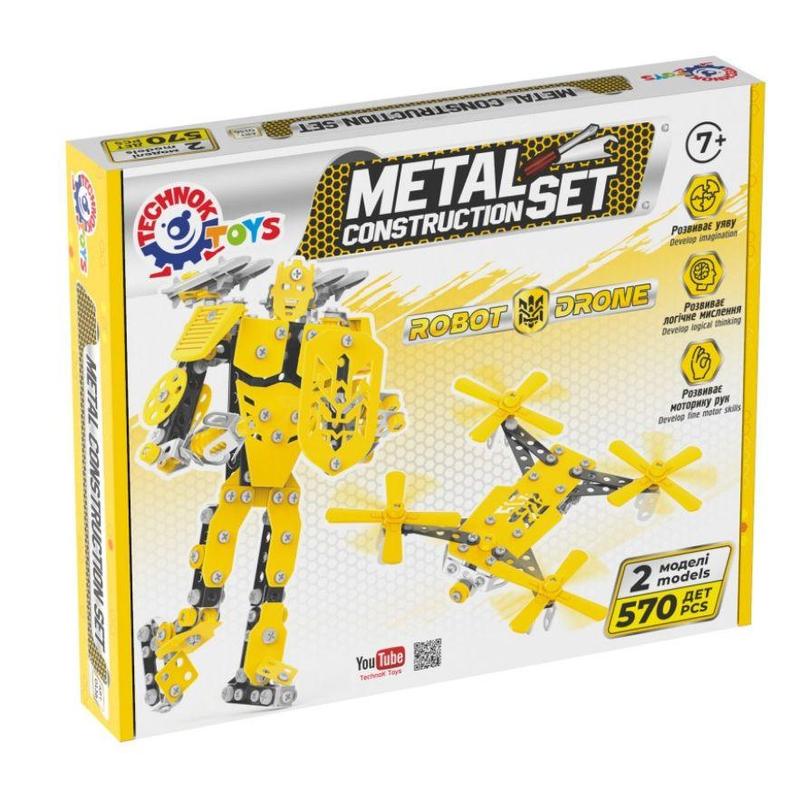 Іграшка «металевий конструктор: дрон - робот технок», 570 деталей арт. 0136 (0136)