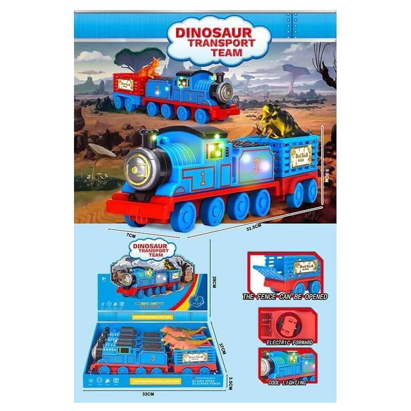 Неймовірні пригоди з динозаврами! Вітаємо у світі, де динозаври стають активними учасниками веселих дитячих ігор! Пропонуємо вам унікальний набір потягів, який відкриває двері до захопливих подорожей. Цей експрес спеціалізується на перевезенні динозаврів, а його великий та просторий вагон створений для комфортної подорожі. Дивовижний локомотив обладнано колесом вільного руху, що дозволяє йому легко і швидко рухатися. Під час поїздки потяг не лише підсвічується яскравими кольорами, а й відтворює характерні звуки, що робить гру ще більш захопливою. Разом з фігуркою динозавра ваша дитина вирушить у незабутню подорож! Основні характеристики: - Розмір потяга: 33х6х9 см; - Склад: локомотив та товарний вагон; - У вагоні розміщена фігурка динозавра; - Колесо вільного руху для зручності гри; - Яскраве підсвічування та звукові ефекти; - Працює на 2-х батарейках типу “АА” (не входять у комплект); - Виготовлено з безпечного пластику. Приєднуйтесь до захопливих пригод з Динозавровим експресом, де ваша дитина дізнається про світ динозаврів і разом з ними порине у веселощі!