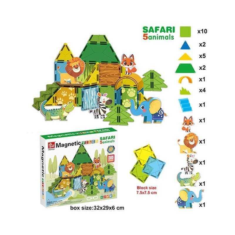 Увлекательный магнитный конструктор с животными Набор SQ 66001-5 позволит ребенку окунуться в мир дикой природы и развивать творческие способности. В комплекте 30 деталей с магнитными соединениями, которые легко соединяются между собой, а также 5 фигурок животных: лев, зебра, слон, лиса и крокодил. - 30 ярких деталей для создания различных конструкций - 5 фигурок животных для игры и обучения - Развивает мелкую моторику, логику и воображение - Изготовлено из качественных и безопасных материалов - Стимулирует усидчивость и внимание ребенка