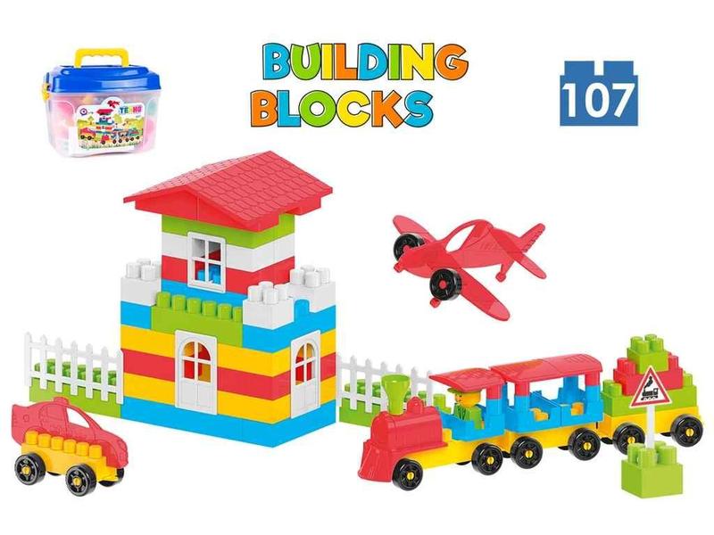 Конструктор – одна из самых популярных игрушек среди детей всех возрастов. Ведь это не только увлекательная игра, а также полезные развивающие и обучающие принадлежности. Можно сконструировать автомобиль, домик, космический корабль и изучить сложение и дроби! В наборе 107 интересных разнообразных деталей ярких классических цветов. Кирпичики разных размеров, окошки, двери и заборцы для строительства домиков и замков. Набор дорожных знаков, фигуры машинок и самолета пригодятся для игр с гаражами и парковками. Платформы с колесами – вообще находка. Можно построить автомобиль, поезд или самолет. А еще платформа пригодится при конструировании роботов. Конструктор отвечает всем требованиям безопасности, в элементах отсутствуют острые края и посторонний запах. Детали имеют яркий цвет, что не остается на детских пальчиках. Кирпичики приятные на ощупь, легко складываются, при этом собранная конструкция прочная и держит форму. Цветная пошаговая инструкция является необходимостью, особенно когда ребенок знакомится с конструктором. Собирая модели согласно инструкции, малыши исследуют возможности конструктора и изучают азы построения базовых фигур. Чем все же полезны игры с конструктором? Главное преимущество этой игрушки – это развитие важных навыков для полноценного развития детей. Конструирование из разных элементов, вносит мелкую моторику и помогает тренировать координацию движений. Также, родители, играя с детками, учат их новым словам: названия цветов, форм, животных, зданий и транспорт. Собирая целую конструкцию, у детей развивается воображение и пространственное мышление. Увлекательные игры с конструктором развивают внимание, терпение и усидчивость. Играя вместе, детки развивают социальные и коммуникативные навыки. Им доказывает сотрудничество, обсуждать дальнейшие шаги и договариваться для решения поставленных задач. Пробовать, экспериментировать, ошибаться и перерабатывать по новому. Мы учимся через игру, создавая что-то новое, узнаем больше о себе и мир! В наборе 107 эти