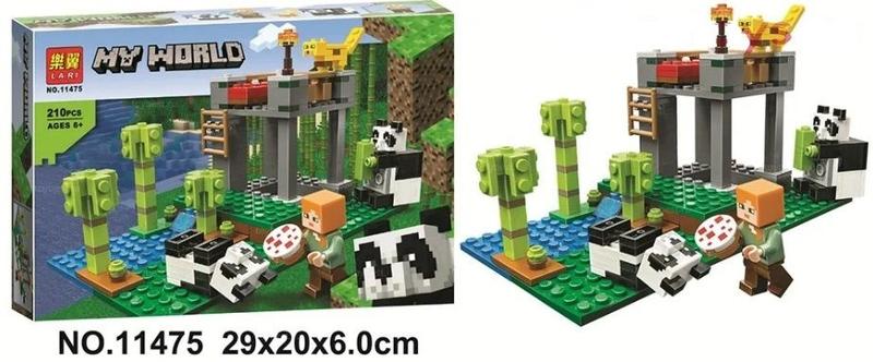 Конструктор Minecraft Питомник панд - перед замовленням, будь ласка, уточнюйте наявність (оптовий склад). Конструктор Minecraft Розплідник панд припаде до смаку любителям тварин. Представлений набором, що включає 210 деталей, він надасть гравцеві можливість почати будівництво власного міні-зоопарку. Репліка LEGO Minecraft 21158 - це ділянка, що потопає в зелені, де є все необхідне для життя диких тварин. У самому його кутку розташовуються водоймище з кристально чистою водою, що дозволяє вгамувати спрагу і освіжитися вихованцям. Поблизу водоймища виростають бамбукові дерева. Оскільки герої набору Minecraft Розплідник панд – Алекс та Оцелот – ще не знають, чим годувати нових друзів, вони принесли їм полуничний пиріг та рибу. Але незабаром усі освоїться і навчаться інтуїтивно розуміти одне одного! У протилежному кутку Майнкрафт розплідника панд знаходиться спальне місце диких тварин. Воно є двоповерховою бетонною конструкцією з дерев'яною драбинкою і лежанкою для мами та її малюка. Щоб вночі пушистикам розплідника панд Майнкрафт (купити набір недорого можна у нас) було комфортно, їхнє житло висвітлює факел, що горить. Якщо вдень їм стає спекотно, вони тікають під арку і насолоджуються там прохолодою стійкого до променів виснажливого сонця каменю.