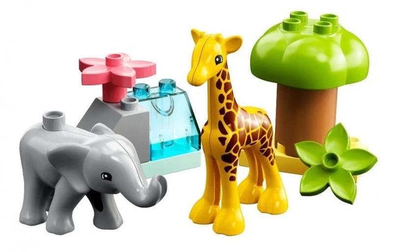 З новим ігровим набором LEGO DUPLO Дикі тварини Африки (10971) малюкові віком від 2 років відкриється цілий світ творчих ігор та важливі етапи розвитку. Відкривши коробку набору, малюк познайомиться з тваринами Африки. чарівним слоненятком і дитинчатою жирафу. Придумайте кожному з них ім'я або кумедне прізвисько. Крім тварин, у наборі є рожева та зелена квітка, зелене дерево заввишки 8 см, невеликий водоспад (його необхідно буде скласти з трьох кубиків ЛЕГО) та складаний килимок із намальованою савана для реалістичної гри. Килимок виконаний з картону складається з трьох частин, розклавши і поставивши його на стіл вийти тривимірний ігровий простір із зображенням піску, водойми з рибками, камінням та деревами. Розміри килимка: висота - 12 см, ширина - 17 см, довжина - 12 см. Таким чином, малюк може вирушити у подорож до Африки, де зустріне нових милих друзів.