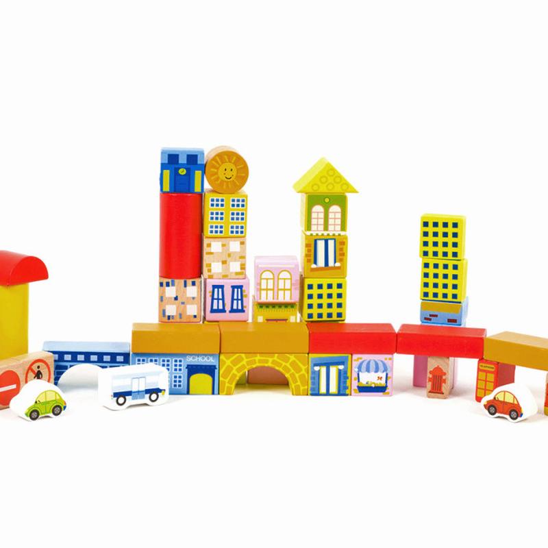 Деревянный конструктор город. Около 80 деталей +-. Идеальное состояние, без коробки, в мешочке
