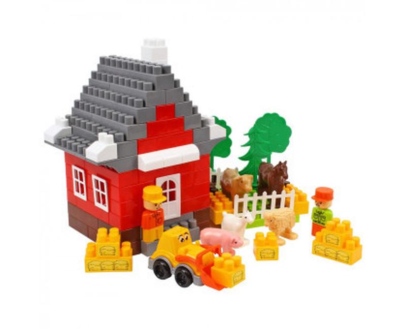 У наборі 44 цікавих різноманітних деталей яскравих класичних кольорів.Цеглини різних розмірів, віконця, двері та парканці для будівництва будиночків та замків. Набір дорожніх знаків, фігури машинок та літака стануть у пригоді для ігор з гаражами