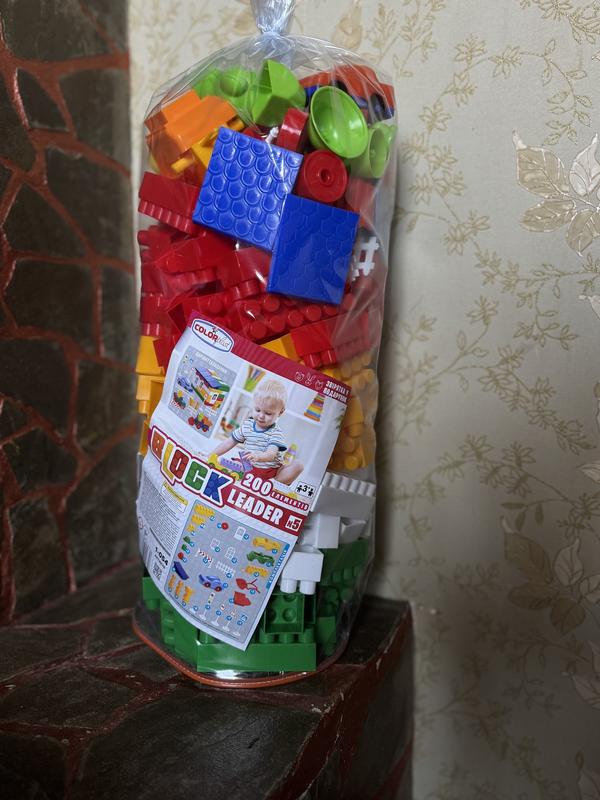 Це дитячий пластиковий блоковий конструктор Colorplast "Block Leader №5" . Кількість деталей: набір містить 200 елементів різних форм та кольорів. Склад: до комплекту входять класичні будівельні блоки, а також спеціальні деталі для збирання будиночків (вікна, двері), машинок та інших конструкцій. Вікові обмеження: призначений для дітей віком від 3 років та старше. Призначення: сприяє розвитку дрібної моторики, логічного мислення, пам'яті та просторової уяви.