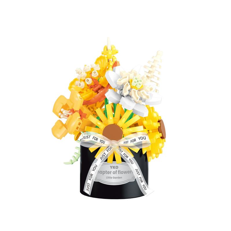 Декоративный набор для сборки букета подсолнухов из строительных элементов. После сборки композиция устанавливается в компактный декоративный горшок и используется как интерьерный элемент. Преимущества - Реалистичная форма цветов и аккуратная цветовая палитра - Компактный формат, подходит для размещения на столе или полке - Сборка без клея, элементы надежно фиксируются - Декоративный бант и подставка входят в комплект - Подходит для спокойной, аккуратной сборки Характеристики - Тип товара: конструктор декоративный - Серия: цветочные композиции - Модель: P2366 - Тематика: подсолнухи - Материал: пластик - Размер готовой композиции: около 200×70×200 мм - Возраст: 6+