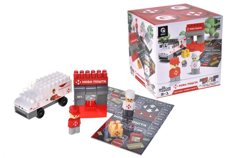 Серія “Blocs&Steps;” від qbee — це не лише про конструктор. У цій серії, окрім блоків, ви отримуєте не просто гру-ходилку, а ще й ексклюзивну гру “Нова пошта”, у якій можете спробувати себе в ролі працівника Нової пошти та позмагатися у збиранні посилок. НОВА ПОШТА – Поштомат майбутнього — це конструктор, з яким ви зберете поштомат і машину доставки. Компактний набір для Вашої дитини. Ідеальний вибір для розвитку уяви, логіки та командного духу. Три гри в одному наборі — тричі більше радості! Набір розрахований на дітей від 3 років. Комплектація: • 42 деталей • конструктор • ігрове поле-пазл • кубик • інструкція