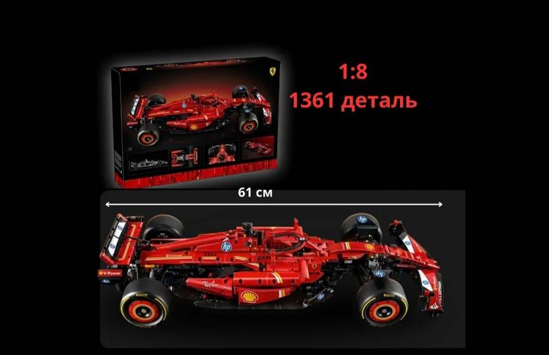 Качественный, детализированный набор, который обязательно понравится и ребенку, и взрослому фанату автоспорта и LEGO Technic. ⸻ В комплекті: 10 запечатанных пакетиков Бумажная инструкция с картинками ⸻ Возможности модели: Управляемые передние колеса Детализированная подвеска Аэродинамический дизайн болида Ferrari Реалистичные шины Pirelli Максимальная схожесть с реальной машиной Формулы 1 Подвижные поршни в двигателе ⸻ Размер собранной модели: Длина - 63 см Ширина — 25 см Высота - 13 см ⸻ Почему стоит купить? Идеальный подарок для фаната Ferrari или Formula 1 Развивает внимательность, логику, моторику Высокое качество — совместимый с LEGO Technic После складывания – стильная коллекционная модель для полки