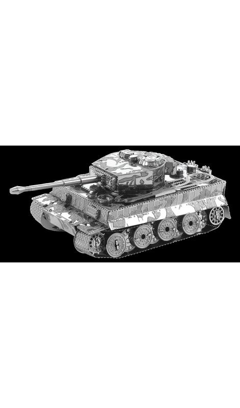 Metal Earth - это коллекция миниатюрных, но очень красивых моделей Достижений Человечества, созданная компанией Fascinations (Сиэтл, США). Металлические 3D модели Metal Earth - это увлекательное хобби для детей и взрослых, замечательный подарок мужчине любого возраста. Модели Metal Earth поставляются не в собранном виде: все части одной модели размещены на одном или нескольких листах металла, предварительно вырезанные в них с помощью высокоточной лазерной резки. Они великолепно детализированы и просты в сборке. Модели собираются без клея. Модель "Танк Tiger I" Предупреждение. Содержит мелкие детали и острые края. Соблюдайте осторожность при работе с детьми. Конструктор предназначен для подростков и взрослых, так как требует хорошо развитой мелкой моторики. Пинцет или плоскогубцы облегчают сборку моделей (в набор не входят). Размеры собранного конструктора: 7,3 х 4,5 х 3,0 см. Габаритные размеры упаковки: 17 х 12.1 х 0.2 см. Материал конструктора: Сталь