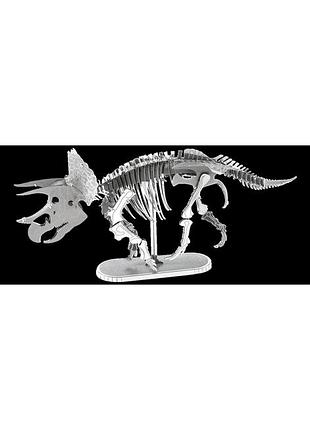 Metal Earth - это коллекция миниатюрных, но очень красивых моделей Достижений Человечества, созданная компанией Fascinations (Сиэтл, США). Металлические 3D модели Metal Earth - это увлекательное хобби для детей и взрослых, замечательный подарок мужчине любого возраста. Модели Metal Earth поставляются не в собранном виде: все части одной модели размещены на нескольких листах металла, предварительно вырезанные в них с помощью высокоточной лазерной резки. Они великолепно детализированы и просты в сборке. Модели собираются без клея. Модель "Скелет трицератопса" Предупреждение. Содержит мелкие детали и острые края. Соблюдайте осторожность при работе с детьми. Конструктор предназначен для подростков и взрослых, так как требует хорошо развитой мелкой моторики. Пинцет или плоскогубцы облегчают сборку моделей (в набор не входят). Размеры собранного конструктора: 13,3 x 3,2 x 6,1 см. Габаритные размеры упаковки: 17,0 х 12,1 х 0,2 см. (плоский конверт) Материал конструктора: Сталь Возраст: 14+ Количество пластин: 2 Количество деталей: 77 Вес в упаковке, кг: 0,049