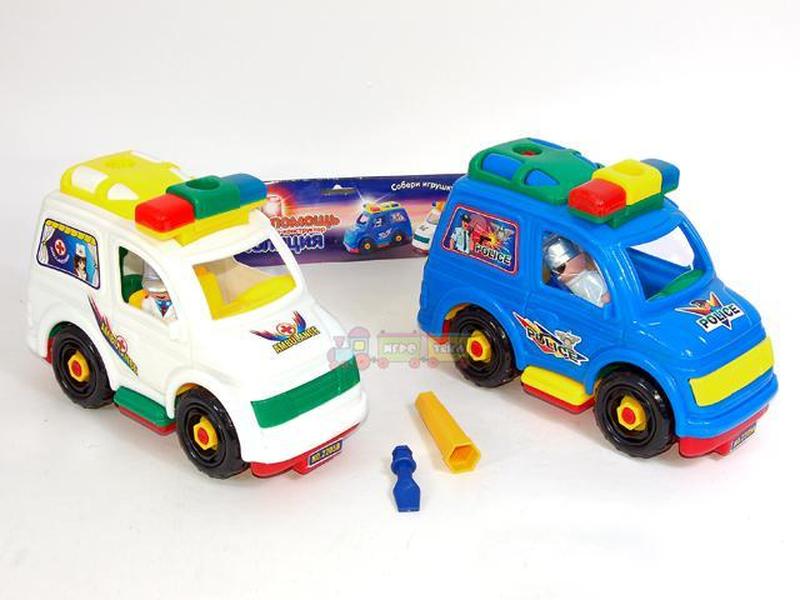 Машинка "Скорая помощь" с яркими крупными деталями несомненно привлечет внимание ребенка. Детали соединяются несложно- при помощи пластмассовых болтов. Параметры: 27 см. x 11 см. В кульке.