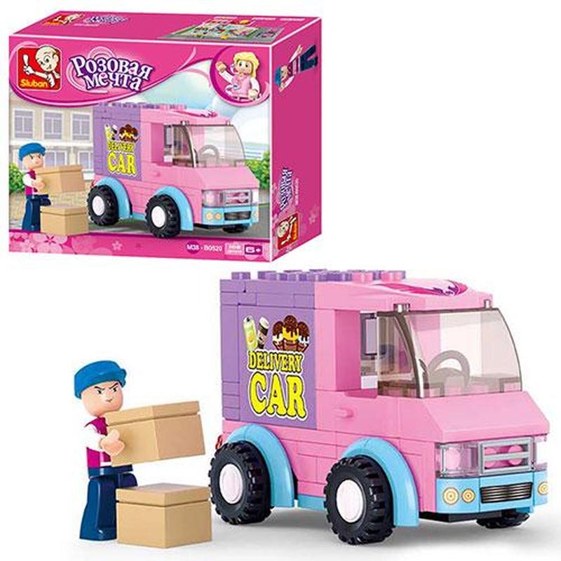 Конструктор SLUBAN Рожева мрія. 102 деталі, фігурка людини та автомобіль. Вік - від 6 років. Матеріал - пластик. Упаковка - коробка. Розмір - 19х4,5х14 см.