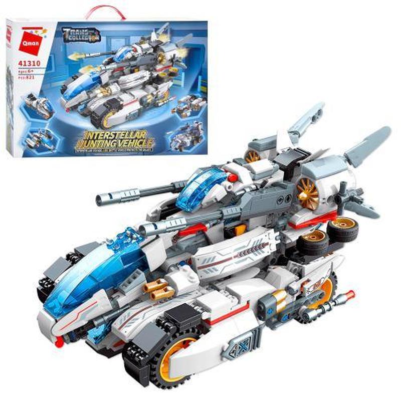 Конструктор Qman "Транспорт". 821 деталь, 4 моделі для збору. Матеріал - пластик. Упаковка - коробка. Розмір упаковки - 52х7х34 см.
