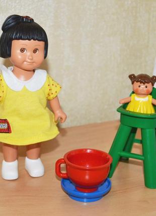 Lego DUPLO Серия Dolls Оригинал Лего LEGO Duplo Dolls 2951 Lisa Полдник Наряд другой будет,не как на фото Легендарная серия наборов,всегда популярна. Высота кукол 16 см,голова,руки,ноги-подвижны,стыкуются с пластиной лего дупло,мебель тоже крепится на пластину. Состояние отличное.