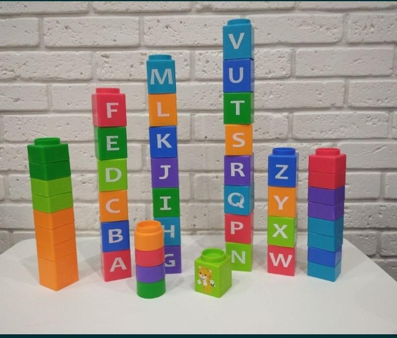Кубики первый конструктор Fisher price. Оригинал. Качество на высоте. Пластик крепкий и толстый. На тех кубиках, где буквы, с обратной стороны животные и предметы, которые начинаются на эту букву (лев, мороженое, яблоко и тд) Кубики очень хорошо крепятся, не туго, ребенок спокойно складывает башенки. Самый востребованный конструктор с годика. Так как ещё малыш строить фигуры не умеет, а башенки даются отлично.
