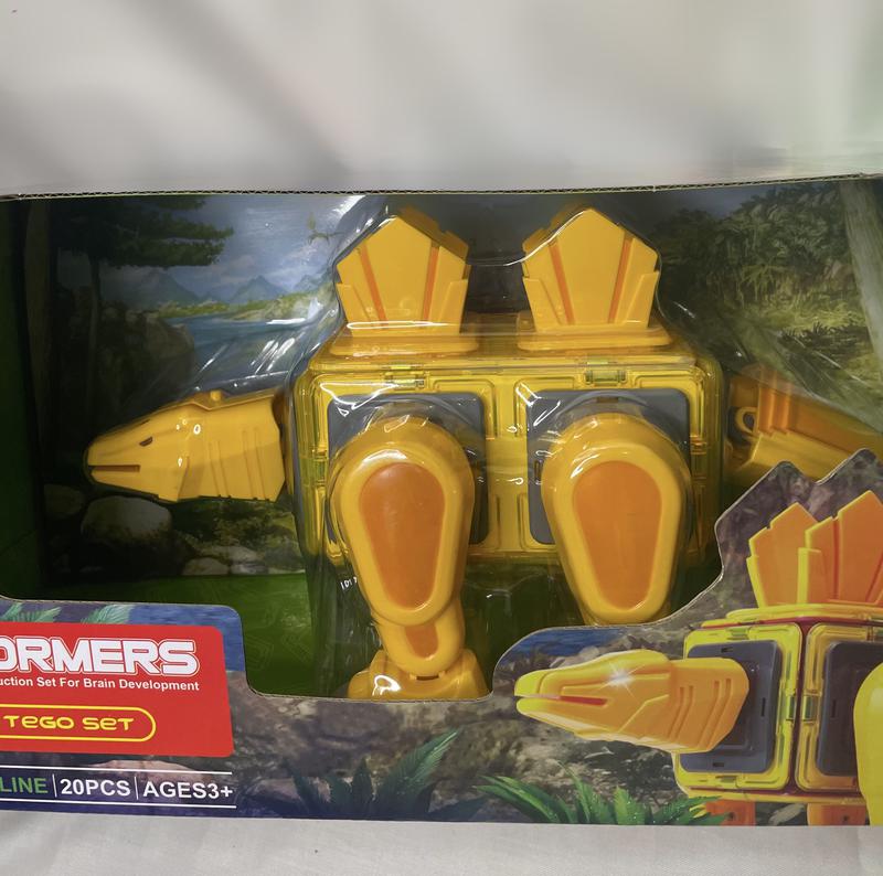 Магнітний конструктор-головоломка представляє собою фігурку динозавра, яку дитина зможе зібрати із запропонованих деталей. Особливість магнітного конструктора полягає в тому, що деталі кріпляться один з одним за допомогою магнітів, які поміщені в пластиковий корпус(20 елементів). Динозавр обладнань світловими і звуковими ефектами: іграшка відтворює рік тварини, очі динозавра світяться (кнопка включення знаходиться на голові динозавра). Для роботи спецефектів потрібні 3 батарейки типу AG13 (входять у комплект). Збираючи і розбираючи конструктор-головоломку дитина розвиває просторове і абстрактне мислення, дрібну моторику рук, уяву і фантазію. Розмір упаковки 42*19*19 см