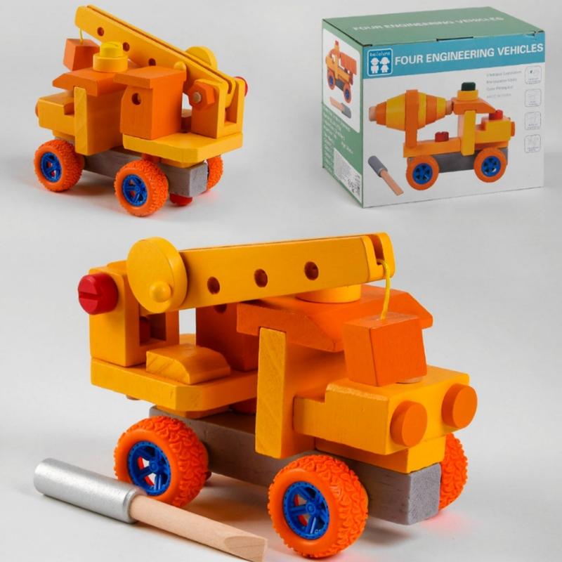 Дерев'яний конструктор С 48163 від ТМ Beilaluna представлена серією Four engineering vehicles! Високо деталізована модель Автокран належати до найпоширенішого типу стрілових самохідних кранів. Машинка виконана з екологічно чистих матеріалів та забарвлена яскравими безпечними фарбами. Конструкція автокрана включає: - рухому платформу; - стрілу, що підіймається; - вантажну лебідку; - прогумовані колеса.