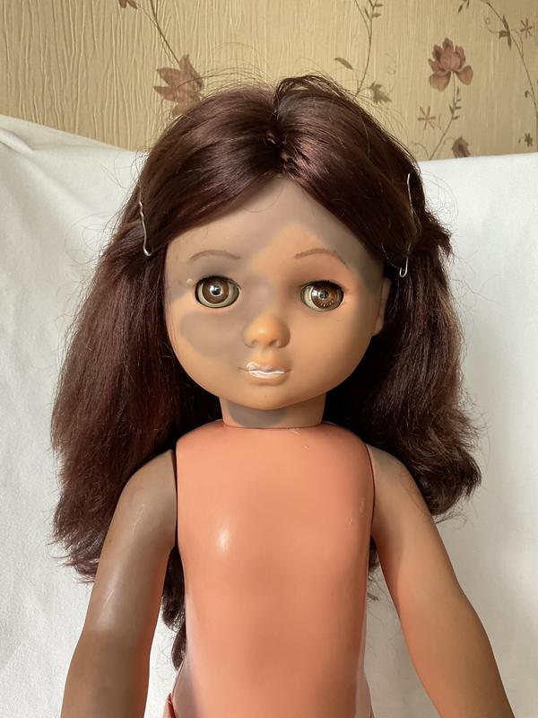 Лялька Сонні НДР з довгим густим шикарним волоссям. Номерна 56/55. Висота 56 см Тулуб, ноги пластмаса, без пошкоджень. Голова, руки виніл, потемнів. Сукня не рідна, широка.
