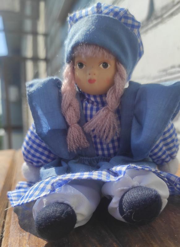 Дуже гарна лялька,добре впишеться в будь-якому інтер'єрі. Обличчя фарфор, тулуб набитий. Розмір 20 см.