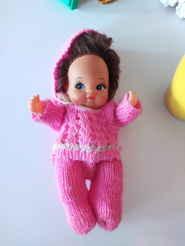 Винтажный пупсик Тайвань ( клеймо на спине) в родной одежде. Рост 18 см с волосами . Старенький, но в очень хорошем состоянии. Ручки- ножки подвижные.