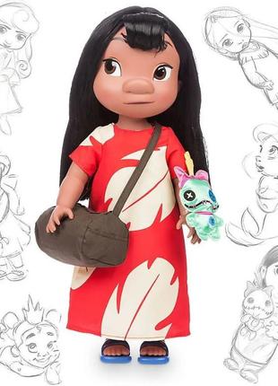 Лялька маленька Ліло із серії “Disney Animators”. - Висота ляльки дісней Малишка Ліло - 40 см - Рухлива в основі рук та ніг - Прошите волосся - Довге чорне волосся, чубчик - Карі очі - Довга сукня з традиційним гавайським принтом - На ногах в'єтнамки - Через плече перекинута містка сумка - На ручці у ляльки є плюшева іграшка - Оригінал Disney. Disney Animators' Collection Lilo Doll – Lilo & Stitch