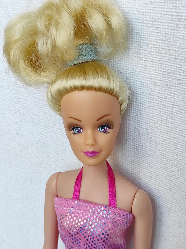 Красивая куколка. Винтаж , тело - дутый пластик , крепкий . У куклы интересная фигурка - ретро , тонкая талия , крутится. Миниатюрные ножки и ручки :) красивые волосы, густые, прошивка хорошая , улажены в прическу. Нюанс - на последнем фото показан - сзади на шее вмятина .
