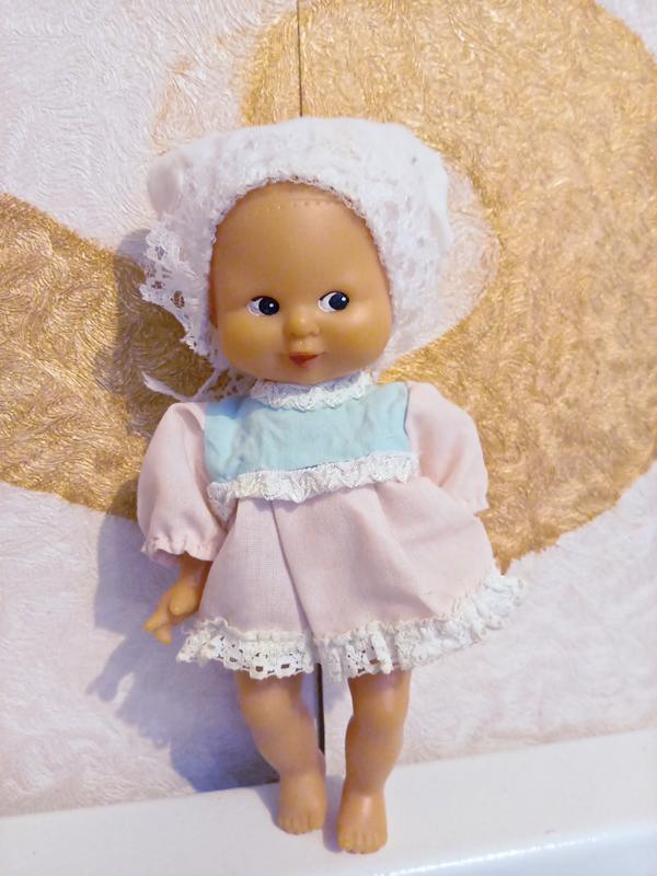 Кукла с резиновой головой, руками и ногами. Туловище пластиковое. Волос нету.