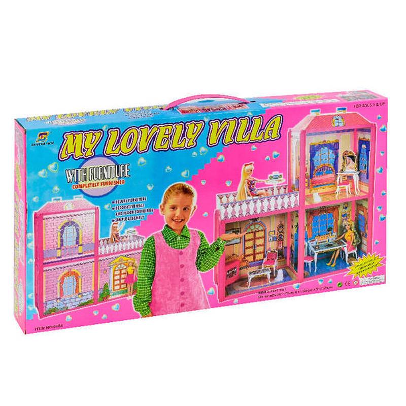 Двухэтажный кукольный дом с терассой для кукол по типу "барби". Каркас и мебель кукольного домика изготовлены из высококачественного, нетоксичного пластика, а стены, из прочного, плотного картона. В комплекте: - картонные и каркасные элементы дома; - мебель; - 2 питомца. - инструкция; Размеры игрушки: 79 - 24 - 72 см Размеры упаковки: 60 - 8 - 34 см; Упаковка: коробка;
