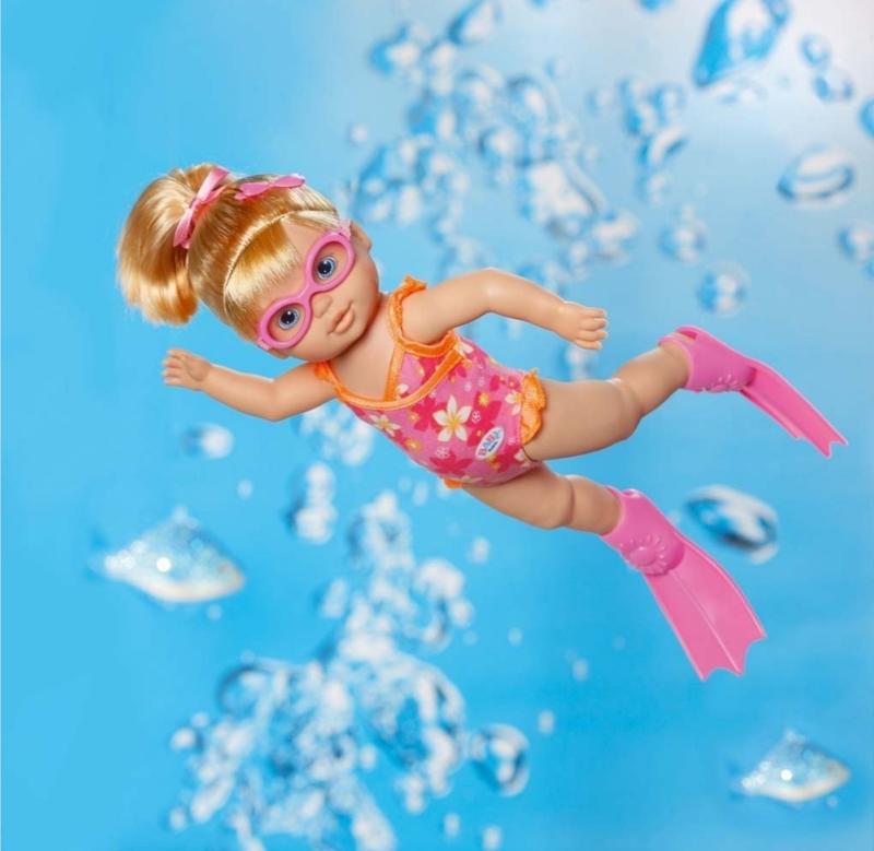 Отличное состояние батарейки три нужно теперь малышка My Little Baby Born может поплавать вместе со своей маленькой мамой. Когда куколка оказывается в воде, она начинает самостоятельно плыть, делая забавные плавательные движения ручками и ножками. Высота: 32 см Размер: 36.8 х 12.7 х 29.2 см 3 шт. х ААА (не входят в набор.