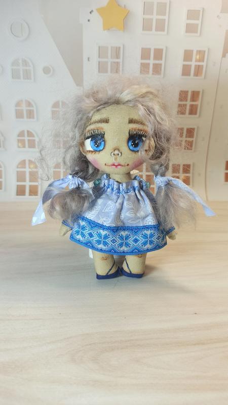 лялька брелок, ручна робота, текстильна, інтер'єрна, 12 см, волосся натуральна козочка. пакується в подарункову коробку.