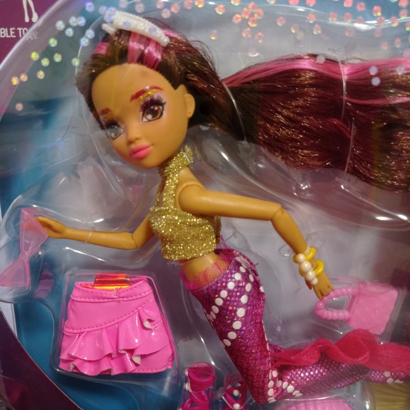 Оригінальні ляльки русалки mermaid high Searra ( з темним волоссям) та Finly ( з білим волоссям), подрудки з яскравими аксесуарами та нарядами, хвост знімається і русалка перетворюється на дівчинку. У ляльки довге красиве волосся ґ, що дозволяє робити різні зачіски. В наборі є сюрприз,який ховається в її аксесуарі - мушлі. Лялька не підходить для гри у воді. Руки та ноги рухливі. Відправка укрпоштою та новою поштою.