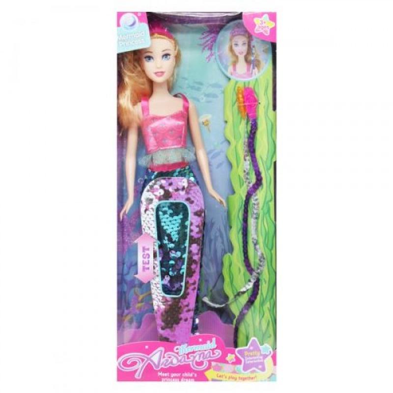 Красивая кукла "Русалочка". Хвост с пайетками (выполнен из ткани) можно снимать и играть как обычной куклой. Подвижные руки и ноги. Высота куклы - 29 см. Выполнено из качественных и безопасных материалов. Для детей от 3-х лет.