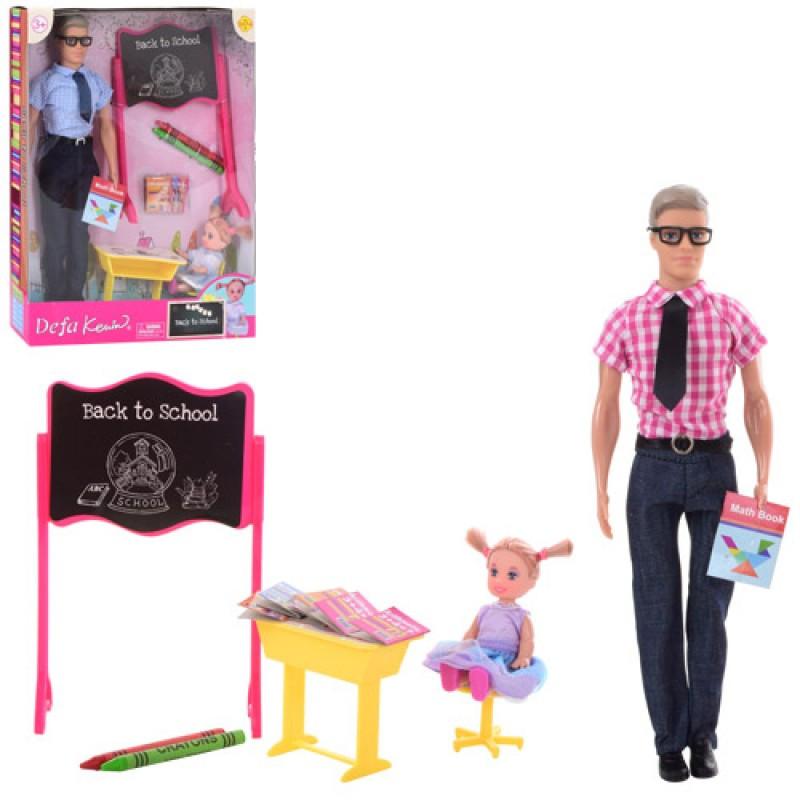 Кукла DEFA учитель 31см, девочка 10см, парта, доска, мелки 2шт, в коробке, 24-33-5,5см, 8368