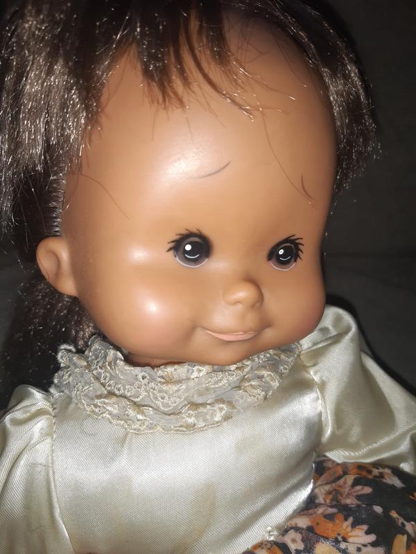 У 47 см Винтажная красивая кукла. Очень качественная. Тех времен. Тело мягконабивное с резиновыми головой и кистями рук. Европа. Винтаж. Платье не родное. Платье разошлось по швам. Требует или ремонт, или замена.