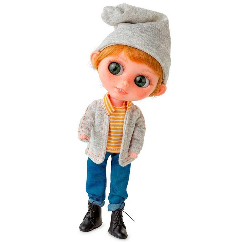 Кукла Berjuan Биггерс по имени Тревор Флинн -- испанская коллекционная кукла мальчик с запахом ванили, с большими глазками, моющимися волосами и подвижными частями для девочек старше 3 лет. Изготовлена из винила, пахнет ванилью, не содержит фталатов -- полностью безопасна для ребенка. Большие неподвижные глаза с выразительным взглядом подчеркнуты длинными ресницами. Имплантированные волосы надежно прошиты по всей голове. Изготовлены из мягкого и приятного на ощупь канекалона, который используется парикмахерами для плетения косичек и французских кос. Волосы моются и легко расчесываются. Одежда и обувь легко снимаются и одеваются. Тревор Флинн (TREBOR FLYNN) -- застенчивый и добродушный круглолицый мальчишка с глубокими зелеными глазами, золотыми волосами с короткой стрижкой. С нежной улыбкой на лице. Одет в синие джинсы, желтую полосатую кофточку и серую курточку. С шапкой-колпачком на голове. На ногах стильные черные сникерсы на шнурках. Тревор сидит и стот, поднимает и опускает руки, двигает головой. Функциональность куклы Berjuan Биггерс Тревор Флинн - для девочек старше 3 лет; - коллекционная -- БИГГЕРС; - из мягкого упругого ароматизированного винила без фталатов -- безопасна для ребенка; - соответствует европейским стандартам качества и безопасности; - производство Испания; - зеленоглазый; - с веснушками; - с короткими с золотыми волосами; - пломбы Onil Origin подтверждают оригинальность; - пахнет ванилью; - большие акриловые глаза с длинными ресницами; - мягкие, приятные на ощупь волосы из канекалона, материал близкий на натуральному волосу; - пряди густо и надежно прошиты по всей голове; - волосы можно мыть и укладывать в прически; - детализированная внешность; - аккуратно прошитая одежда из качественной ткани; - в джинсовых штанах, кофточке и демисезонной курточке; - в стильных черных сникерсах на шнурках; - в плотной подарочной коробке с окошком; - всего в коллекции 12 кукол с разной внешностью.