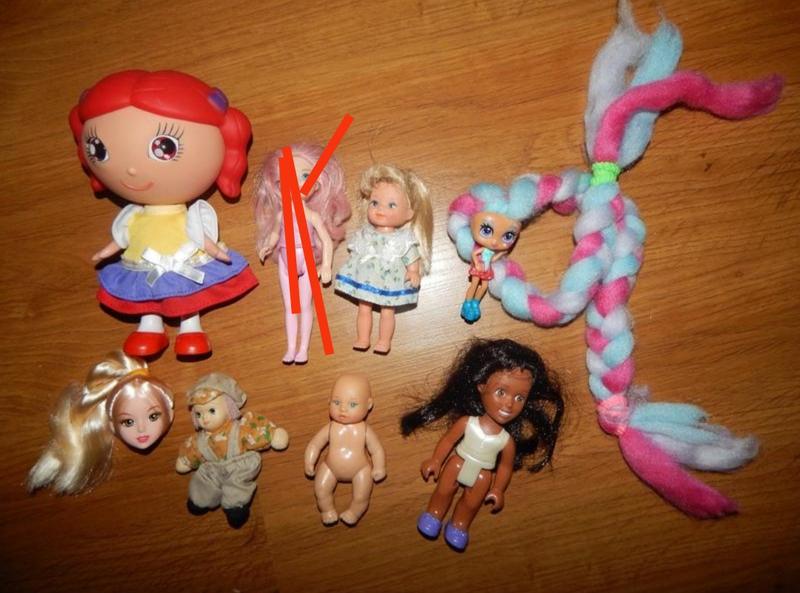лот куклы в идеальном или в новом состоянии +пупс можно поить песчает 9.5 см +хлопок одет + темненька 12,5 см GTI 97 +с красными волосами кукла высота17см в виде нова + с косой.+ ++оригинал набор в платья 12см СИМБА