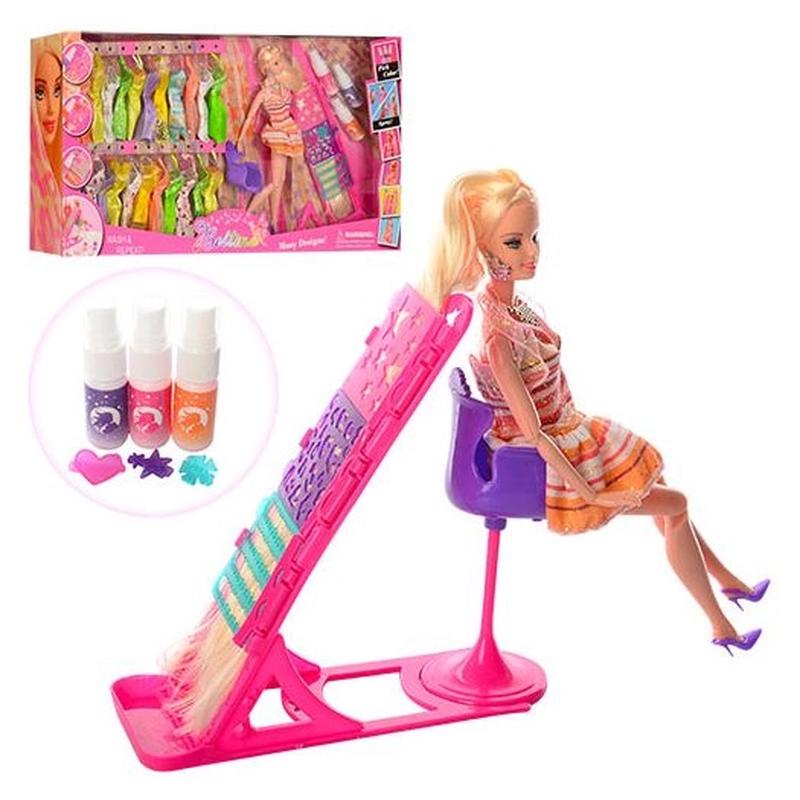 Лялька в наборі 68033 стане чудовим подарунком для будь-якої дівчинки, яка захоплюється модою та стилем. У наборі Ви знайдете безліч дизайнерських нарядів для ляльки. З нею можна сміливо розігрувати модні та ексклюзивні покази, поринуть з головою в рольові сюжети модельєрів, моделей та подіумів. Лялька виглядає яскравою та стильною блондинкою. Її тіло дуже рухливе і закріплене шарнірами на колінах, кистях, ліктях та плечах. Але головною перевагою моделі виступають волосся. Воно дуже довге 33 см і розраховані на модне фарбування. У набір входить 3 барвники спрею і спеціальний трафарет для волосся. Він допоможе створити новий стильний образ і потрапити до сучасних трендів смаку та стилю. У комплектацію набору входить: - лялька; - 3 спреї для волосся; - трафарет для фарбування волосся; - гребінець; - стілець; - 24 сукні. Розмір упаковки: 67 см × 11 см × 33 см