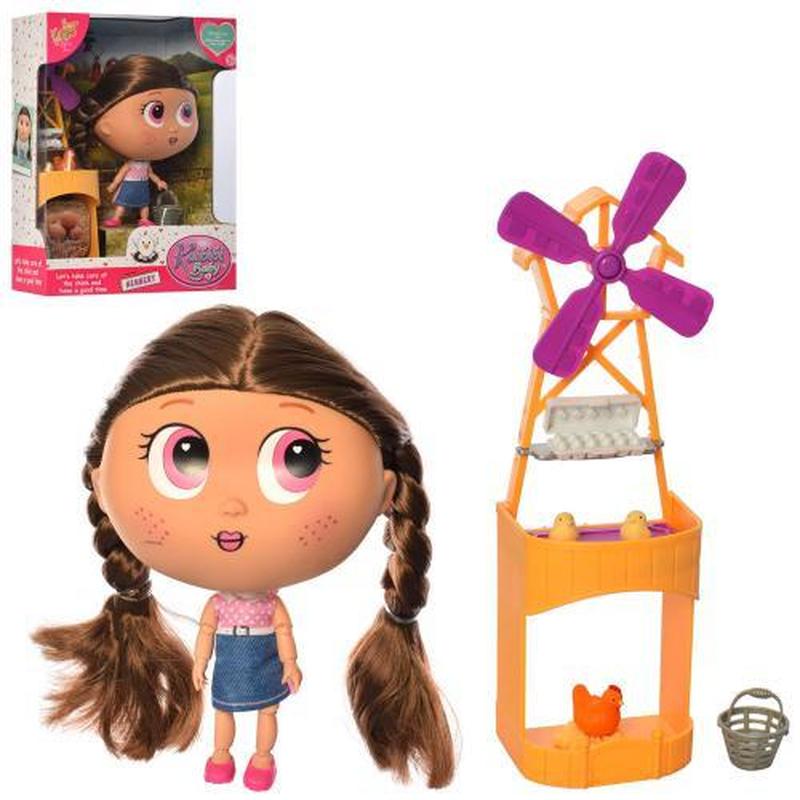 Лялька Kaibibibi Baby - це оригінальна і стильна іграшка, яка обов'язково стане улюбленицею кожної дівчинки. Лялька малятко виглядає сучасно і зі смаком, її велика голова і маленьке тіло виконане в мультяшному стилі, що додає нотку унікальності в образ. Лялечка має дуже рухоме тіло. Руки прокручуються в плечах і кистях, а також згинаються в ліктях. Ноги прокручуються в області тазу, згинаються в колінах і в щиколотках. У ляльки м'яке і дуже приємне каштанове волосся, яке укладене в зачіску. У комплекті з лялькою йде фермерський набір, він містить невеликий вітряк. Комплектація: - лялька; - загін; - курка; - 2 курчати. Розмір упаковки: 22.5 см × 10 см × 28.5 см