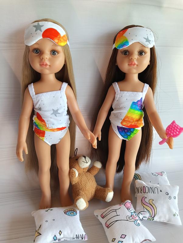 Комплект для ляльки Паола Рейна Майка + трусики, 130грн Маска для сну 70грн Очень красивый и яркий комплект. Базовые цвета все в наличии Ручная работа. Кресло подушка для куклы 150грн Комплект постельного белья 450грн